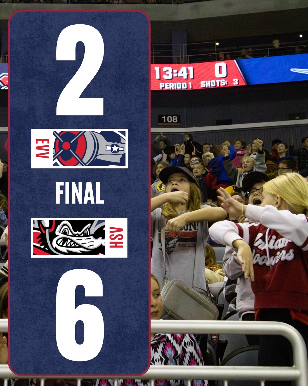 In the first period, the Havoc opened the score at 8:05 with a breakaway goal by Connor Fries. Evansville finished the first period strong, with Scott Kirton scoring an unassisted goal at 14:04 as he stole the puck in close. The second period began with a scrap, as Matthew Hobbs got the better of Havoc veteran Josh Kestner, much to the delight of the crowd. Unfortunately, the Havoc scored three goals, Austin Alger at 3:59, Ethan Lindsay on a power play at 8:33, and Fries again at 12:13 to open up a 4-1 lead. Late in the second period, Evansville again found life as Myles Abbate scored off a net-front scramble from Hobbs to shorten the gap to 4-2. The Havoc, however, pulled away in the third period with goals from Jaxon Camp and Kestner to round out the score at 6-2.