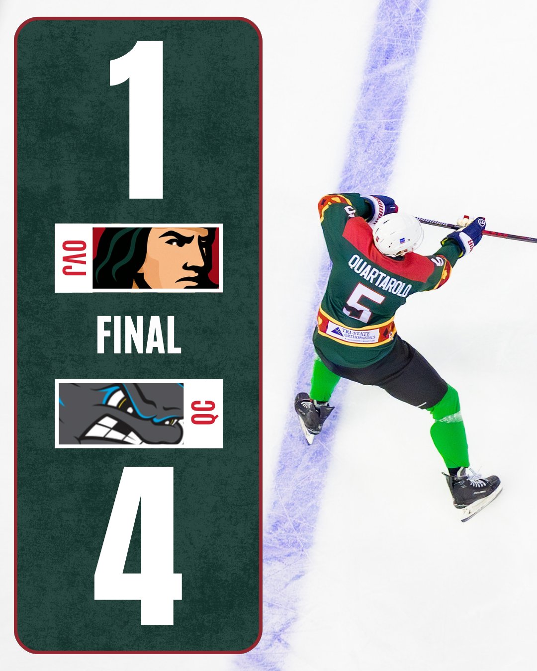Thunderbolts Unable to Rally in Third Period; Fall 3-1 to Quad City