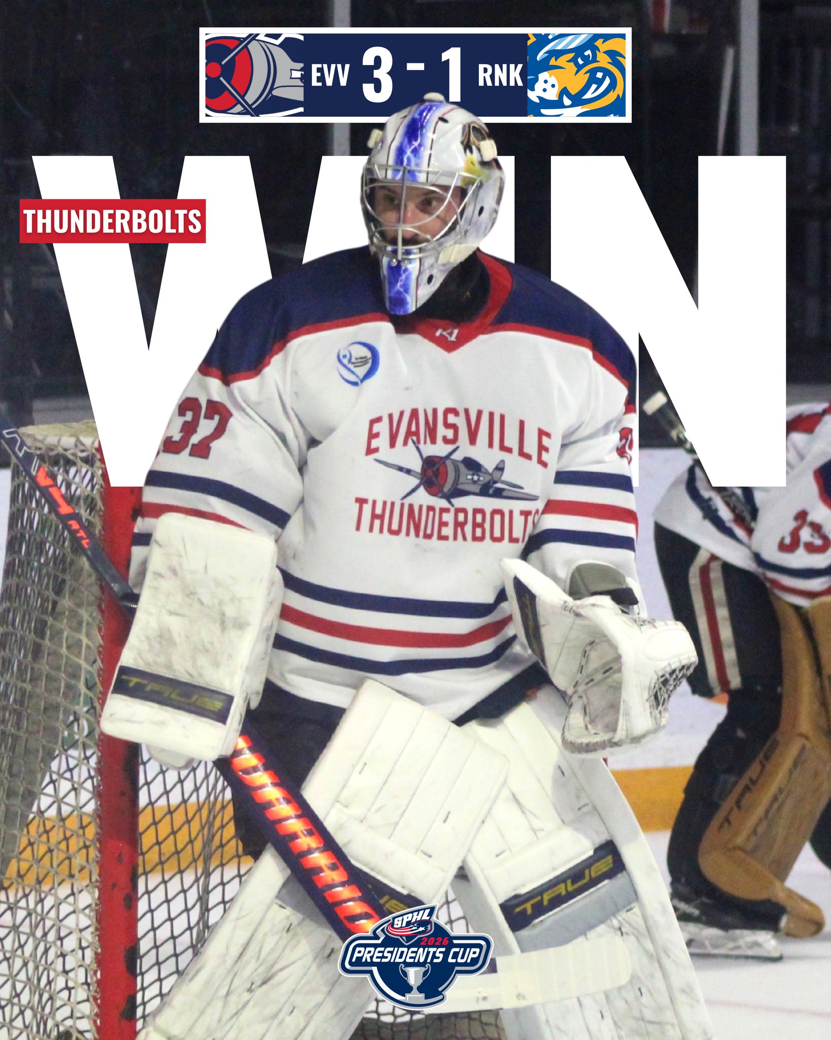 For the first time in franchise history, the Thunderbolts will have home ice advantage as they look to defend their 2025 Presidents Cup Title starting on Wednesday, April 8th at the Ford Center against the #5 Pensacola Ice Flyers. In a best of three series for the first round, the Thunderbolts will head to the Pensacola Bay Center in Pensacola, FL on Friday, April 10 for a 7:05 pm puck drop for Game 2. If needed, the Thunderbolts will be back at home at the Ford Center on Sunday, April 12 at 3:00 pm to determine the series winner. Tickets for the first round go on sale on Monday, April 6th at 12:00 pm on Ticketmaster.com, the Ford Center Box Office, or call us at 812-422-BOLT (2658).