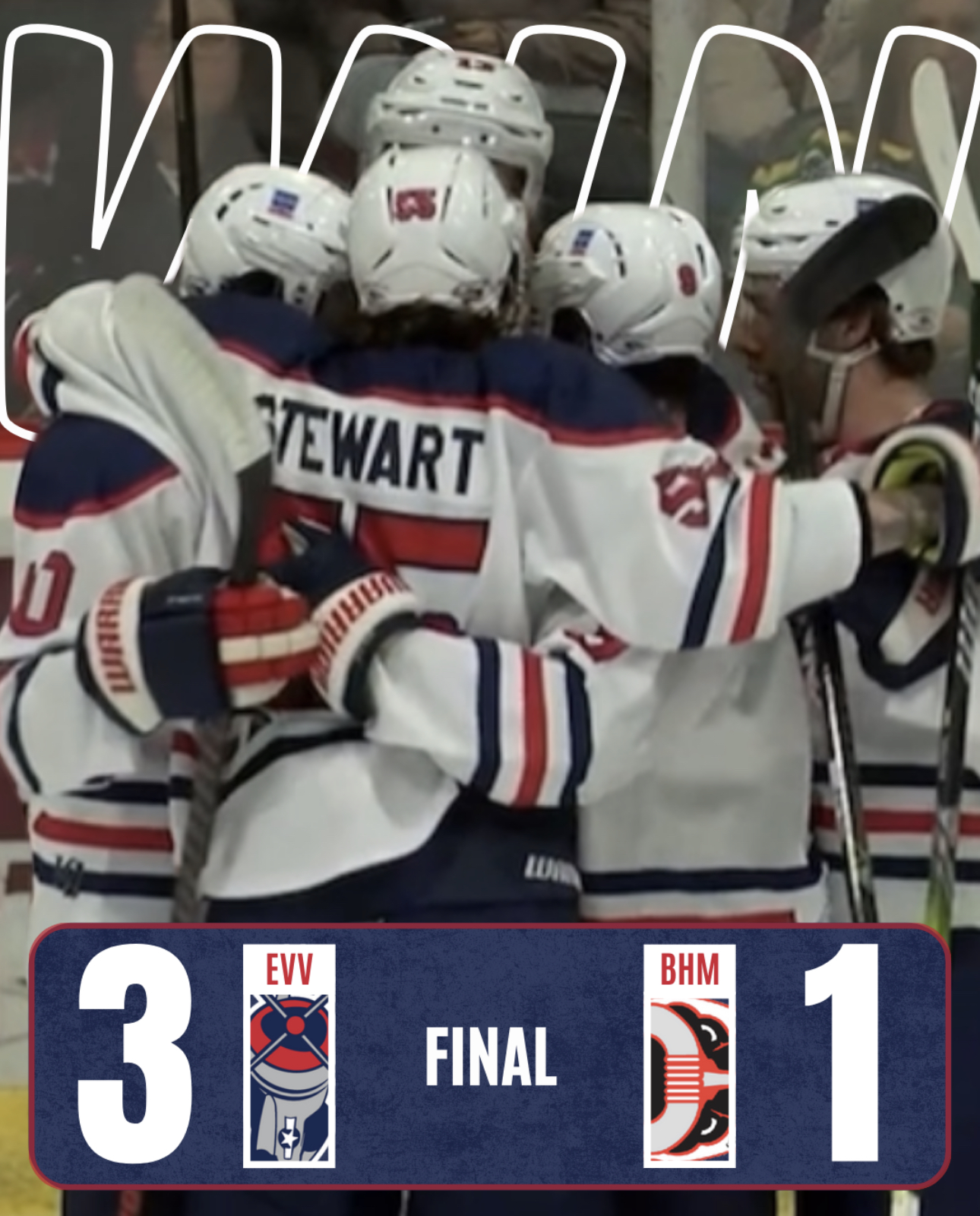 Following a big penalty kill late in the first period, Evansville grabbed a 1-0 lead with 58 seconds remaining as Will van der Veen scored from Keanan Stewart and Evan Miller. An early second period penalty proved costly for the Thunderbolts, as CJ Walker scored at 1:32 to tie the game, and Walker scored once again at 4:03 to put the Bulls ahead 2-1. In the third period, Evansville gained a late power play advantage and pulled Kristian Stead for a 6-on-4 advantage, but MacGregor Sinclair managed to score into the empty net to put the game out of reach at 3-1 with 47 seconds remaining. Adding insult to injury, Evansville scored in the very final second of the game on the same power play, scored by Evan Miller and assisted by Joey Berkopec and Derek Contessa to bring the final score to 3-2.