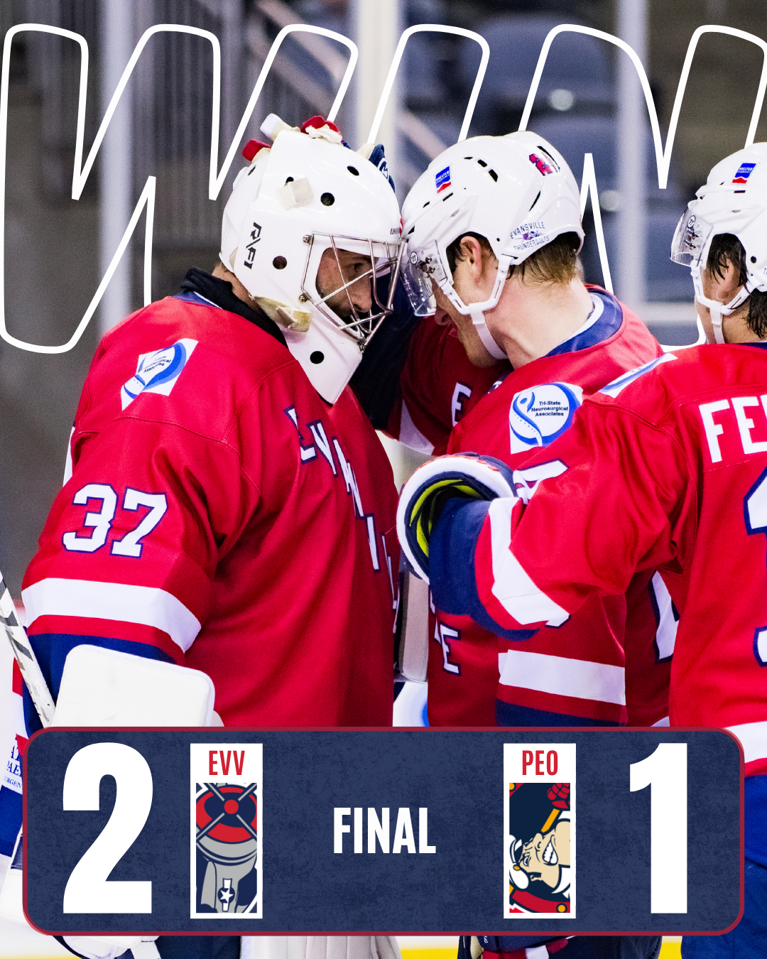 The Thunderbolts pressed right from the opening faceoff and throughout the first period, outshooting the Rivermen 13-8 and heavily out-chancing Peoria. Late in the period, the Thunderbolts were rewarded as a shot from Connor Tait barely squeaked over the goal line, the goal confirmed after review, unassisted at 15:57 for Tait’s first professional goal. Evansville continued the push early in the second period and extended the lead to 2-0 only 48 seconds in as Matthew Hobbs scored off a face-off from Jordan Simoneau. On the power play, Aidan Litke scored on the rush set up by Myles Abbate at 6:37 to extend Evansville’s lead to 3-1 and force the Rivermen to change goaltenders. In the third period, the Rivermen broke the shutout at 7:03 as Michael McChesney deflected a puck into the net to trim Evansville’s lead to 3-1. With goaltender Jack Bostedt pulled late, the Rivermen were denied any further goals, and Simoneau cashed in for an unassisted empty-net goal at 19:35 to put the game out of reach as the Thunderbolts won 4-1, sweeping the weekend series.