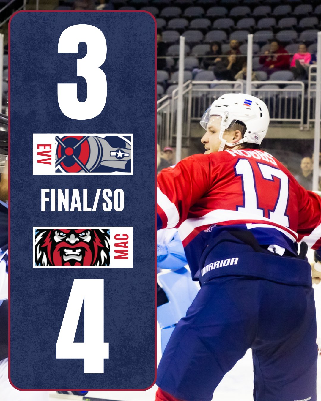 The Mayhem took the game’s first lead 3:30 into the game off a net-front redirection by Conor Witherspoon. At 13:20, Evansville tied the game as Isaac Chapman scored on a turnaround shot in the mid-slot from Dilan Peters and Derek Contessa to begin the deluge of stuffed animals onto the ice from the stands on all sides. The Thunderbolts jumped ahead in the second period as Keanan Stewart scored from Scott Kirton and Tyson Gilmour to give Evansville their first lead, pushed further to 3-1 at 11:37 as Stewart scored again on a 2-on-1 rush from Eelis Laaksonen and Connor Tait. Macon rallied to tie in the third period, as Connor May scored at 11:48 and Hayden Ford scored with 46 seconds remaining to force overtime. The game required a shootout as overtime went scoreless, and Macon defeated Evansville in the shootout two goals to none to win 4-3.