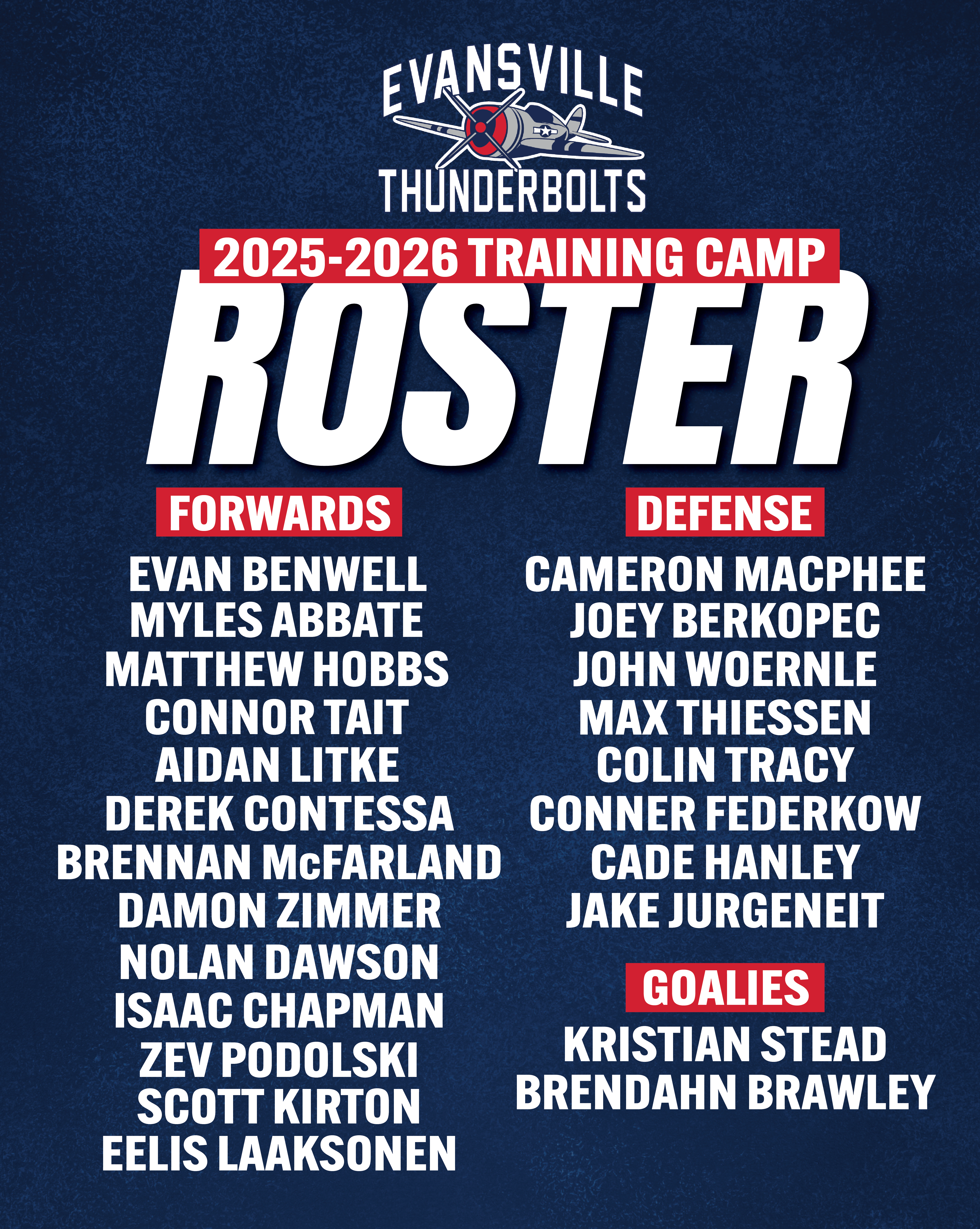 Discover our current team roster and learn interesting information and statistics about each member of the Evansville Thunderbolts! Get involved by following your favorite players and watching their progress over the course of each season.