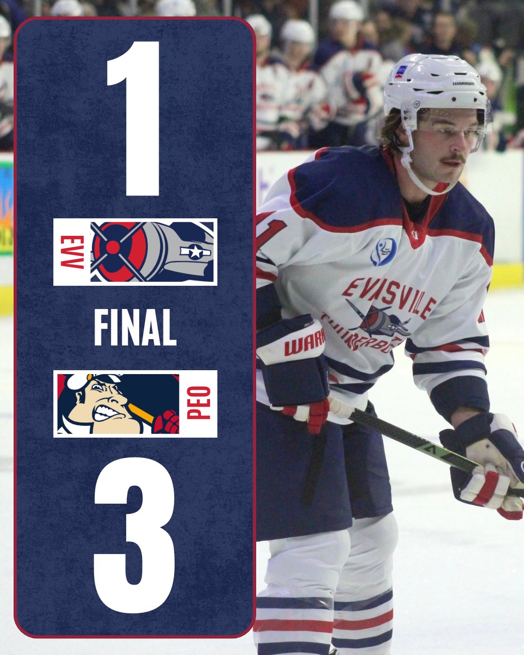 Peoria, Ill.: It was a strong night for special teams as well as for Myles Abbate, who scored twice on the night, however Evansville’s regulation unbeaten streak came to an end as the Thunderbolts...