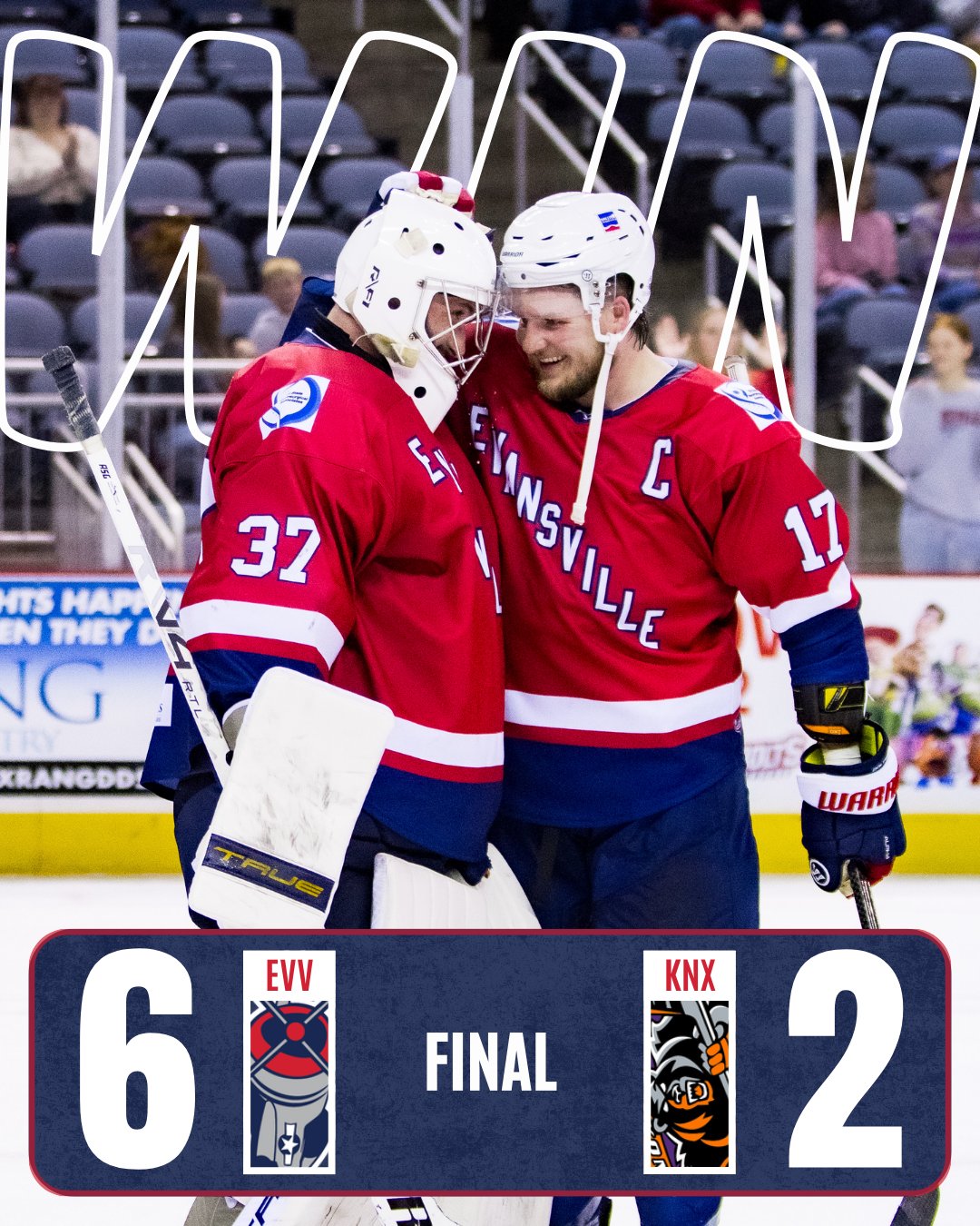 Evansville, In.: The good times keep rolling for the Thunderbolts, who won their sixth consecutive game on Friday night at Ford Center, 6-2 over the Knoxville Ice Bears to move back into 2nd place in...
