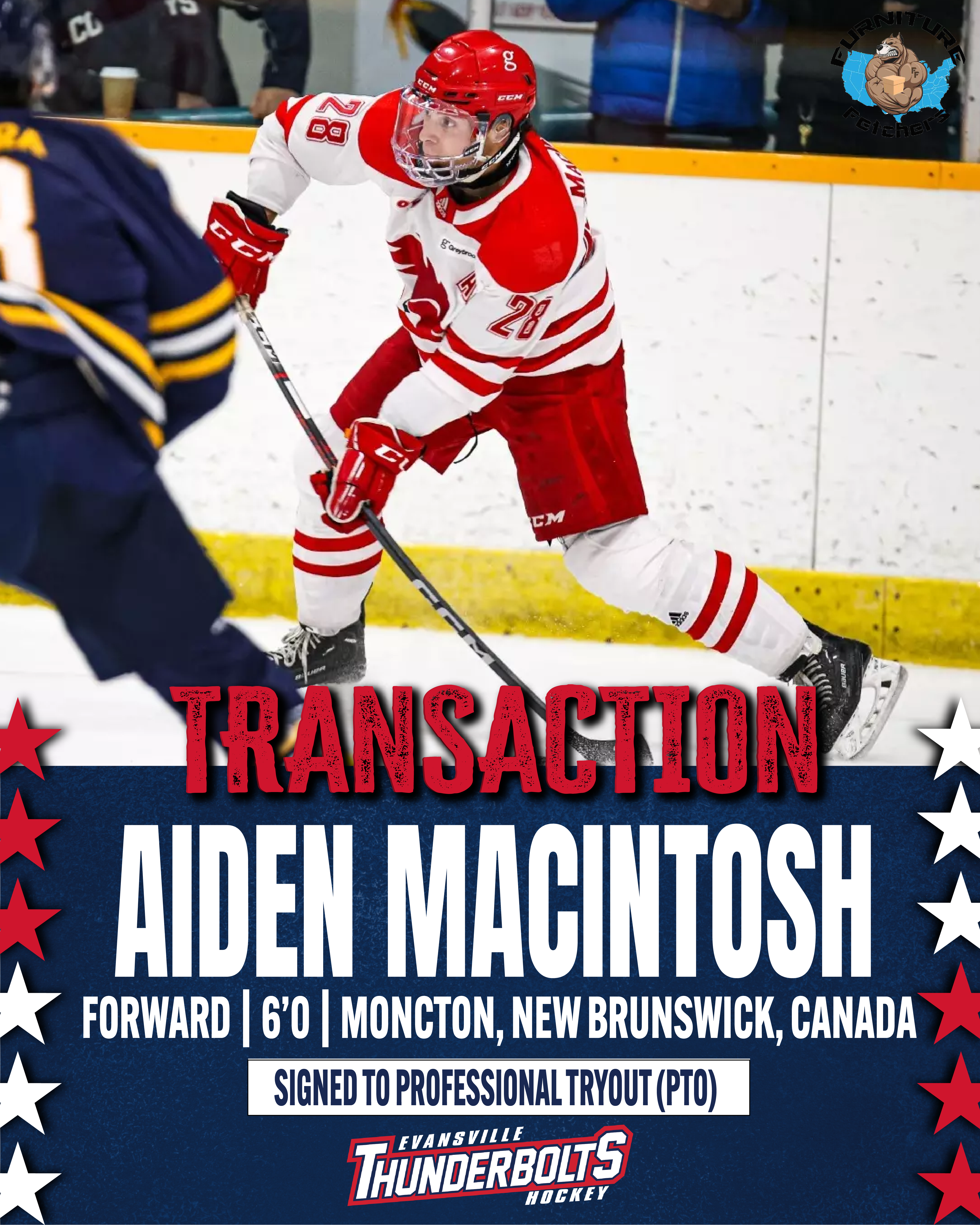 On Thursday, Head Coach/Director of Hockey Operations Jeff Bes announced signing of forward Aiden MacIntosh to a professional tryout (PTO).