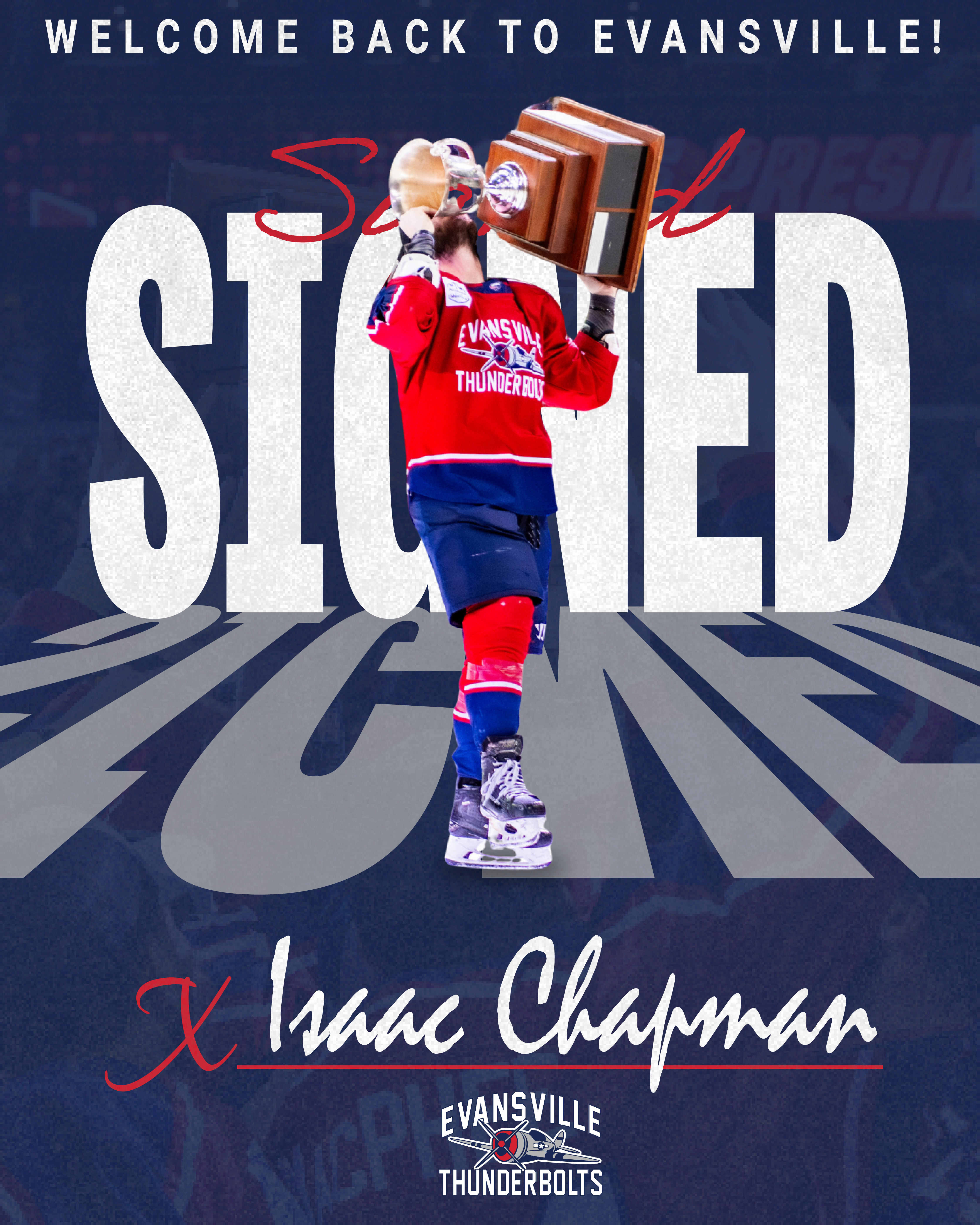 Evansville, In.:The Evansville Thunderbolts and Head Coach/Director of Hockey Operations Jeff Bes are pleased to announce the re-signing of forward Isaac Chapman for the 2025-26 season. The...