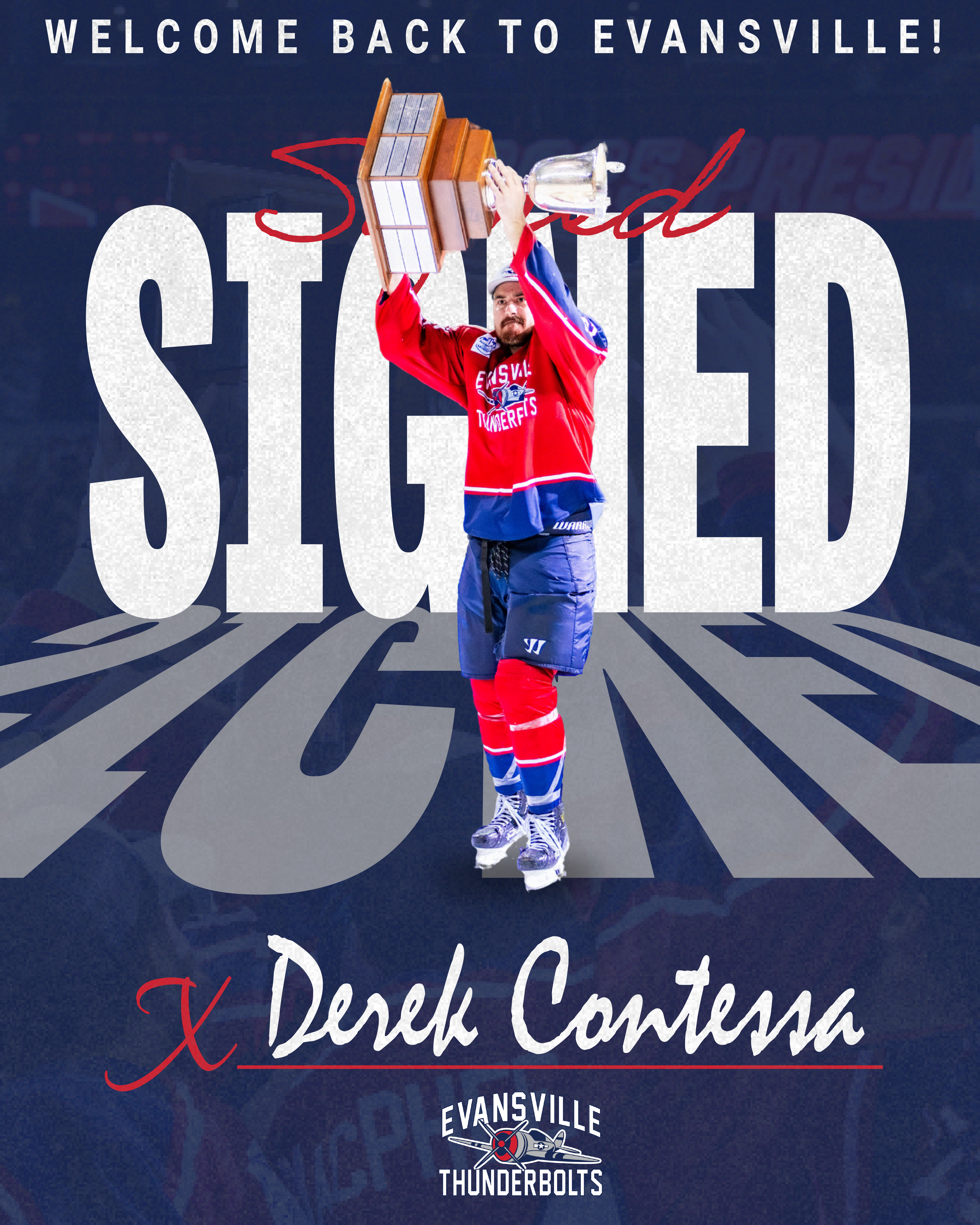 Evansville, In.: The Evansville Thunderbolts and Head Coach/Director of Hockey Operations Jeff Bes are pleased to announce the re-signing of forward Derek Contessa for the 2025-26 season. The...