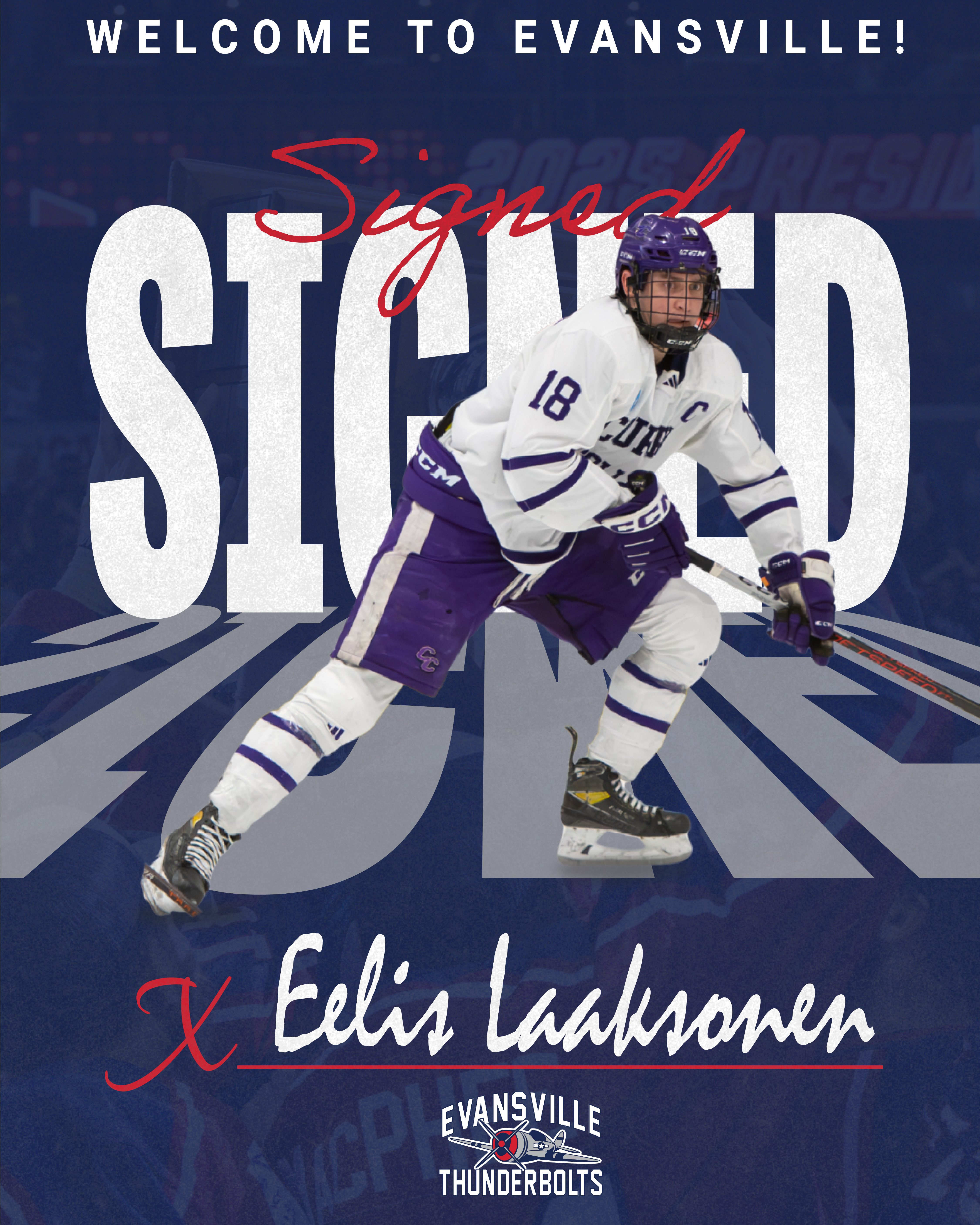 Evansville, In.: The Evansville Thunderbolts and Head Coach/Director of Hockey Operations Jeff Bes are pleased to announce the signing of forward Eelis Laaksonen for the 2025-26 season. The...