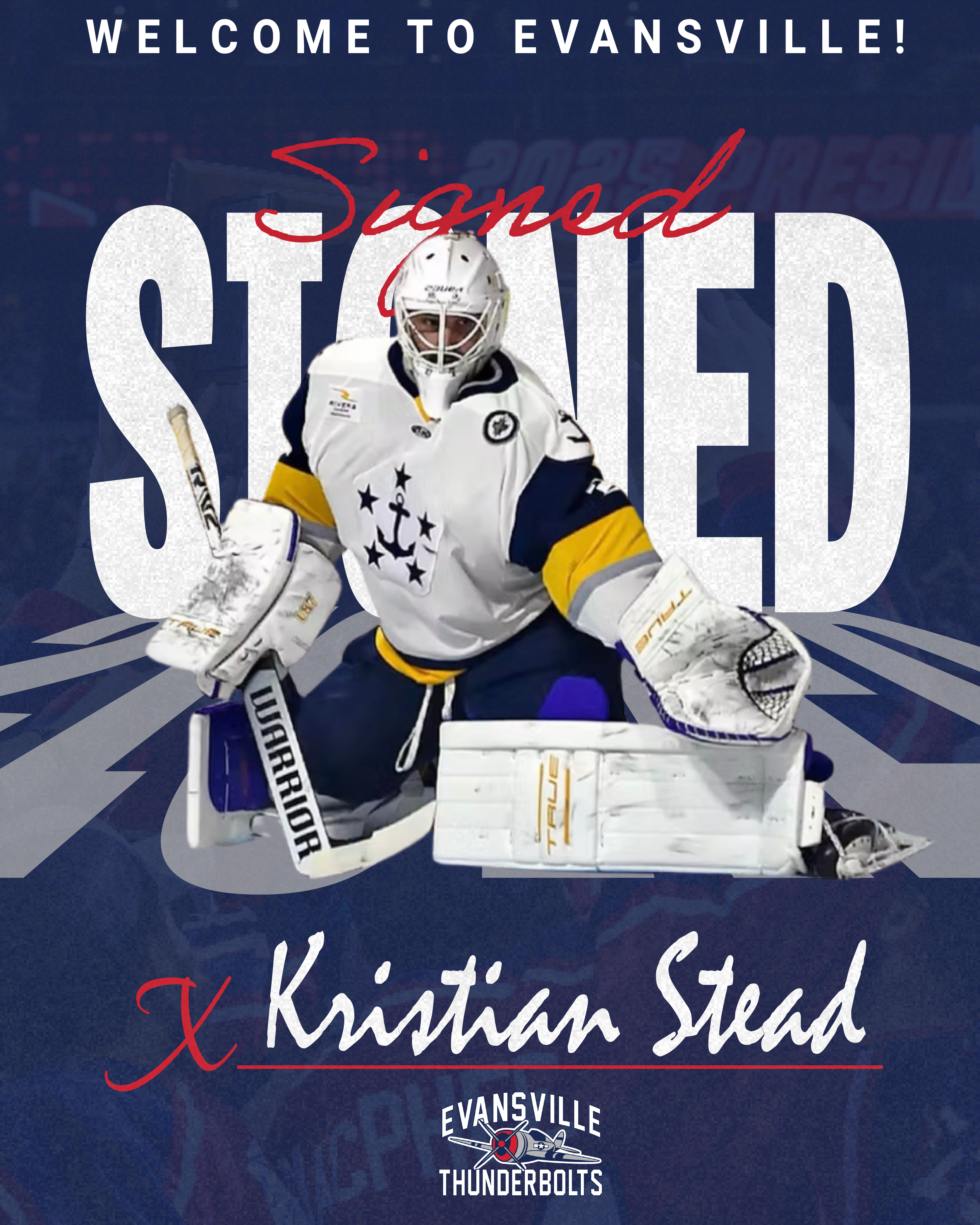 Evansville, In.: The Evansville Thunderbolts and Head Coach/Director of Hockey Operations Jeff Bes are pleased to announce the signing of goaltender Kristian Stead for the 2025-26 season. The...