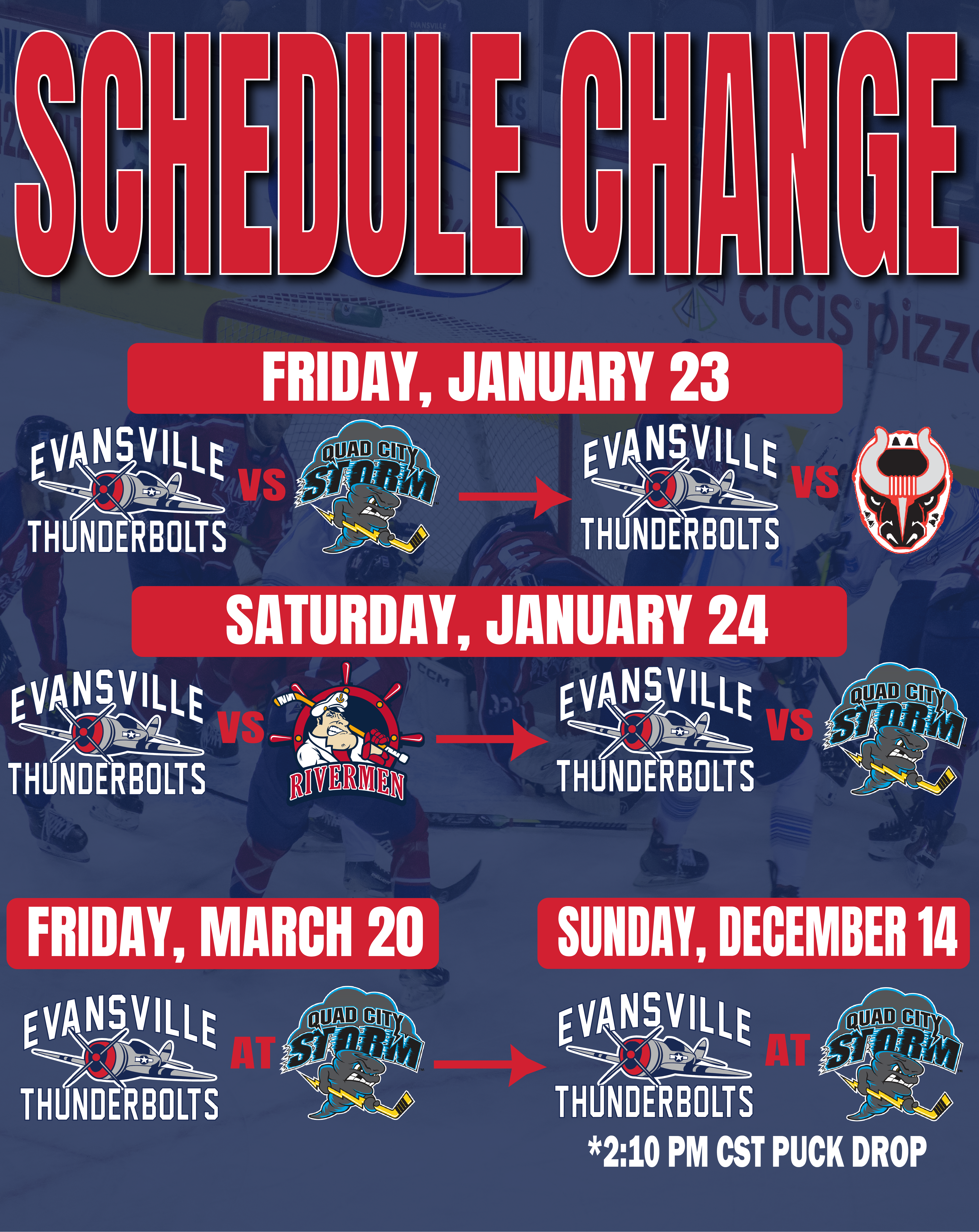 Evansville, IN: The SPHL announced a schedule change for an away game against the Quad City Storm as well as two opponent changes for the upcoming 2025-26 season. The date change: The game on...